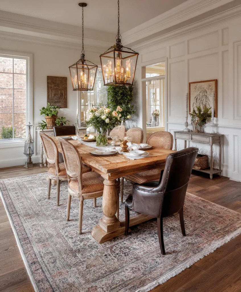 I’m a sucker for anything that looks like it has a story. That’s why I love vintage or distressed rugs in dining rooms.