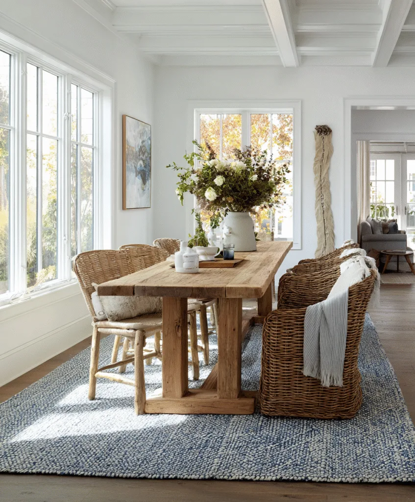 When I went through my farmhouse phase (didn’t we all?), I rolled out a big jute rug under our chunky table.