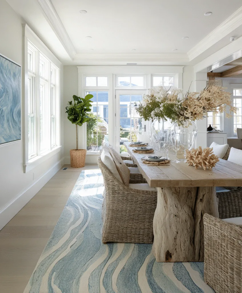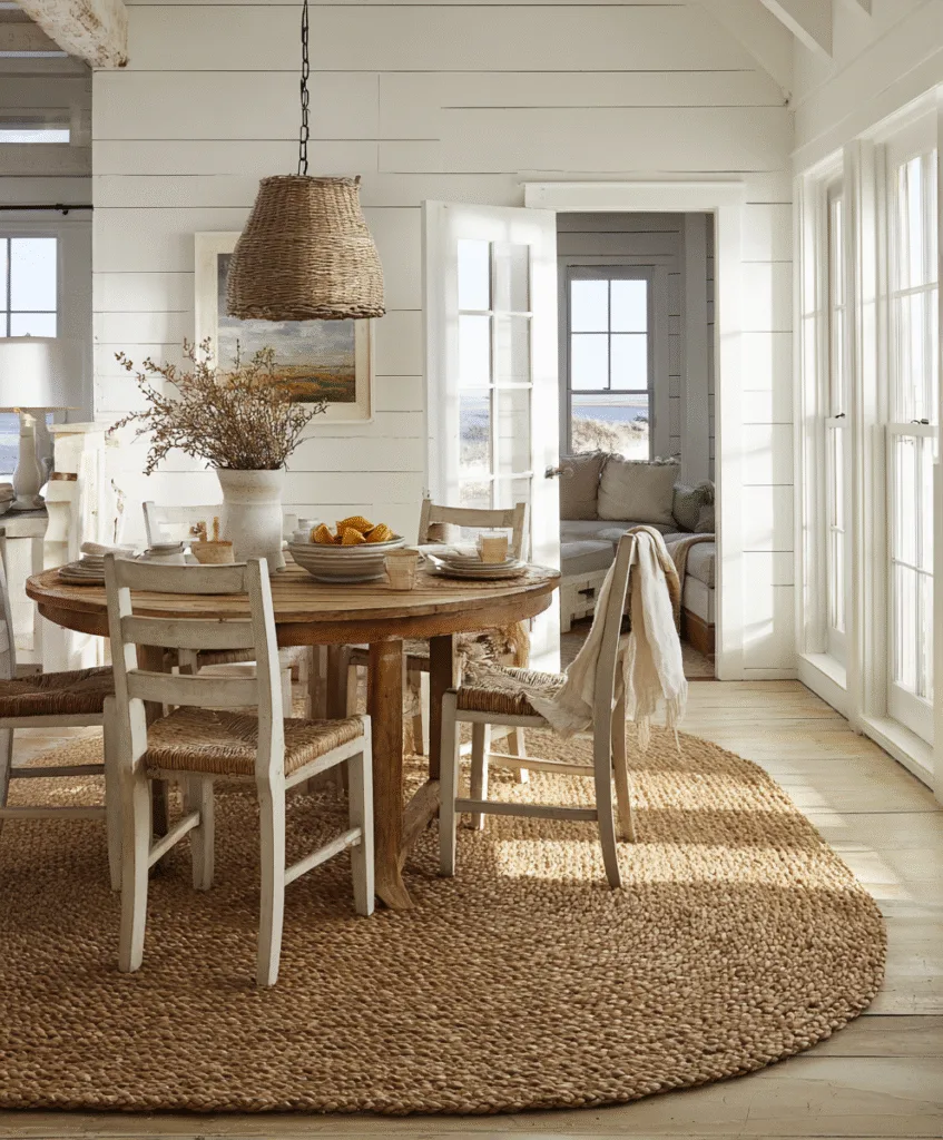 We used a nautical-inspired rug at our beach rental, and I loved how it instantly made the dining room feel calm and breezy.
