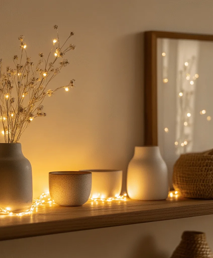 Battery-powered LED lights, string lights, or small clip-on reading lamps can transform your shelf from “blah” to magical.