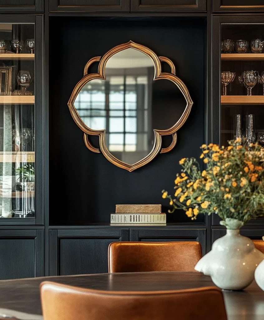 Small round or framed mirrors on shelves can bounce light and make your dining space feel larger.