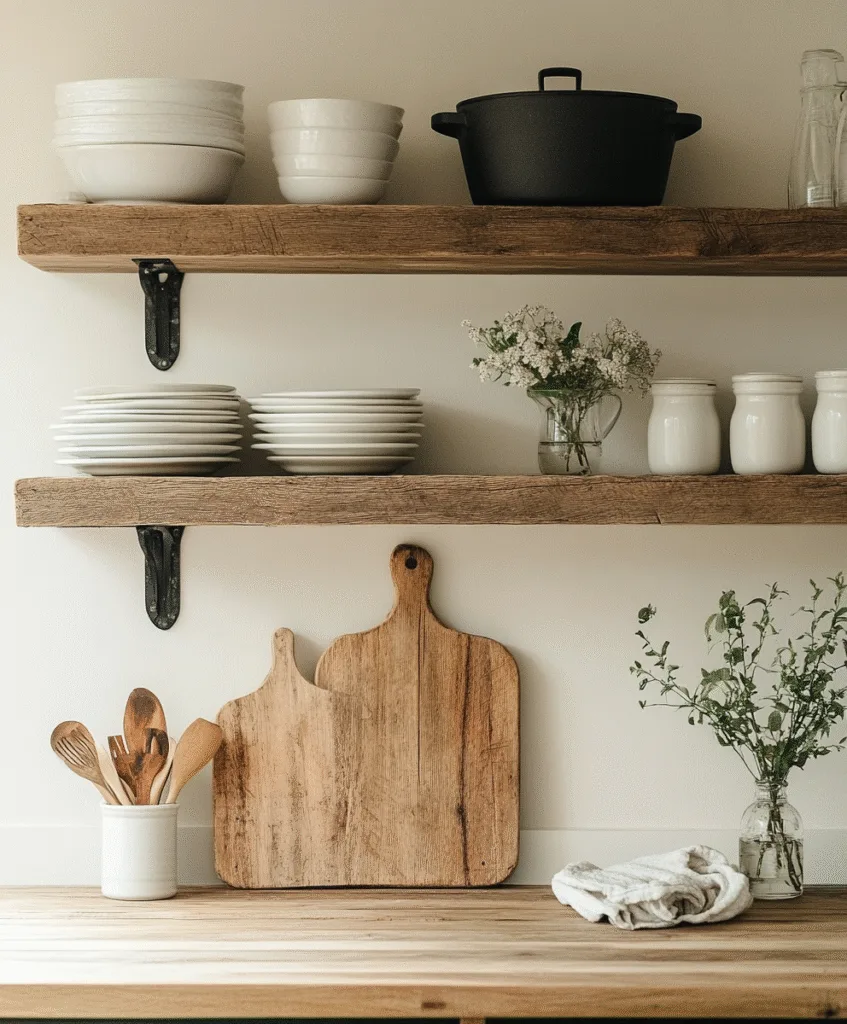Yup, those open shelves or wall-mounted ledges can go from “meh” to magazine-worthy with just a few thoughtful touches.