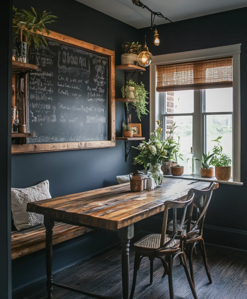 Leave sweet messages or quotes on a small chalkboard or letter board tucked into your dining shelf.