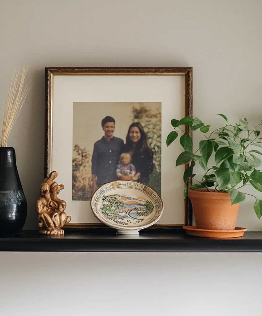 Shelves are the perfect spot for little storytelling moments. A photo from your Italy trip, a hand-painted plate from a market in Bali, these make your space feel you.