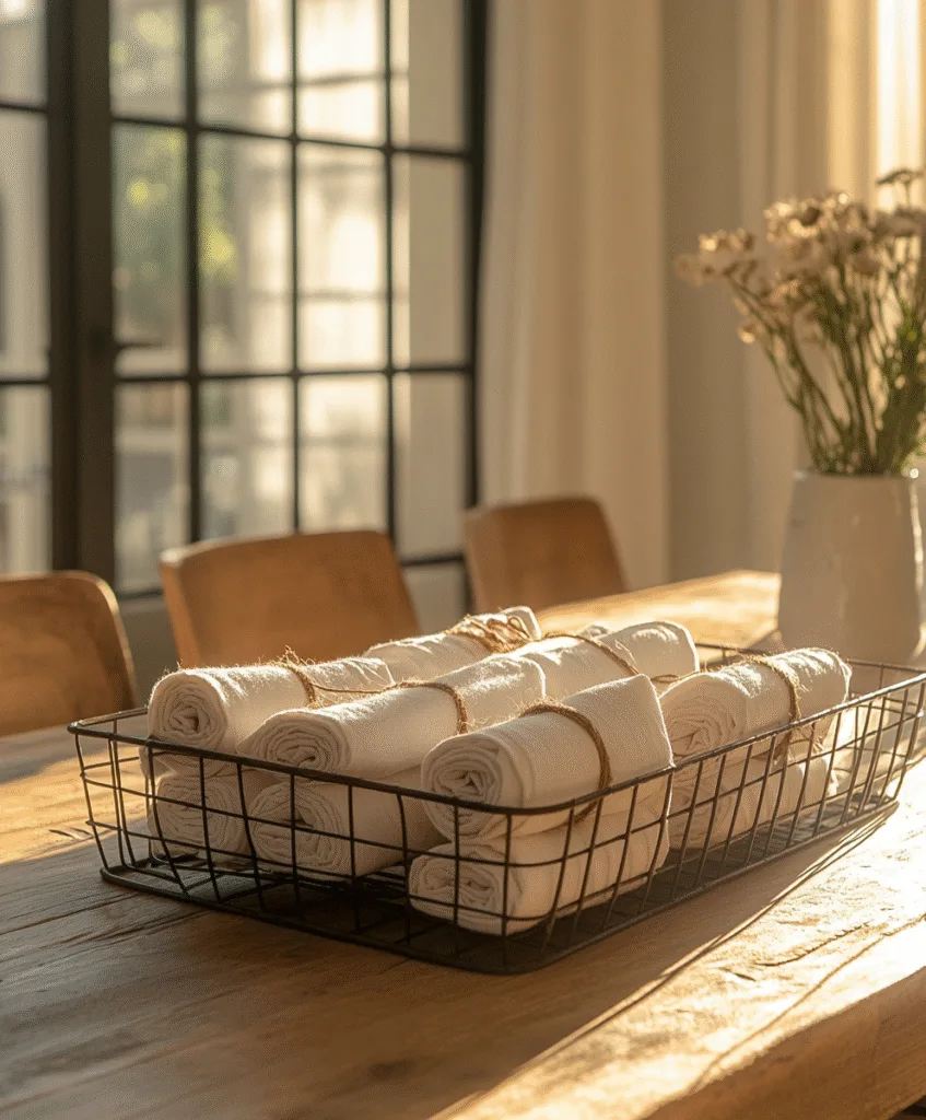 I mix and match napkin colors depending on the mood. It’s a tiny detail that makes the whole table feel more thoughtful.
