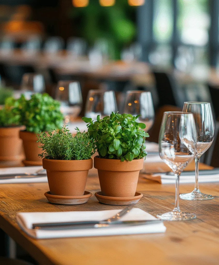 This works great on longer tables. I take 3 to 5 tiny terracotta pots and line them down the center, either with herbs, succulents, or dried lavender.