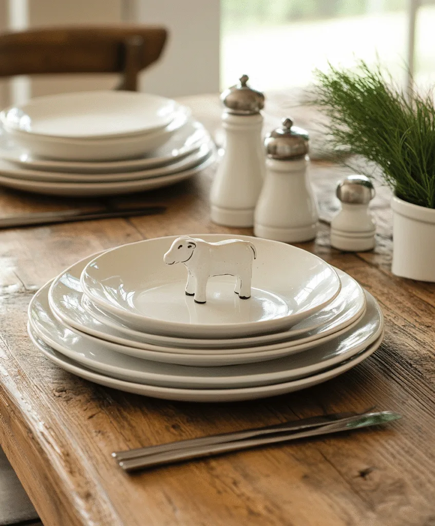 I had a few extra ceramic side plates that didn’t match anything. One day I stacked them and added a tiny toy cow on top (don’t ask me why), and my kids loved it.