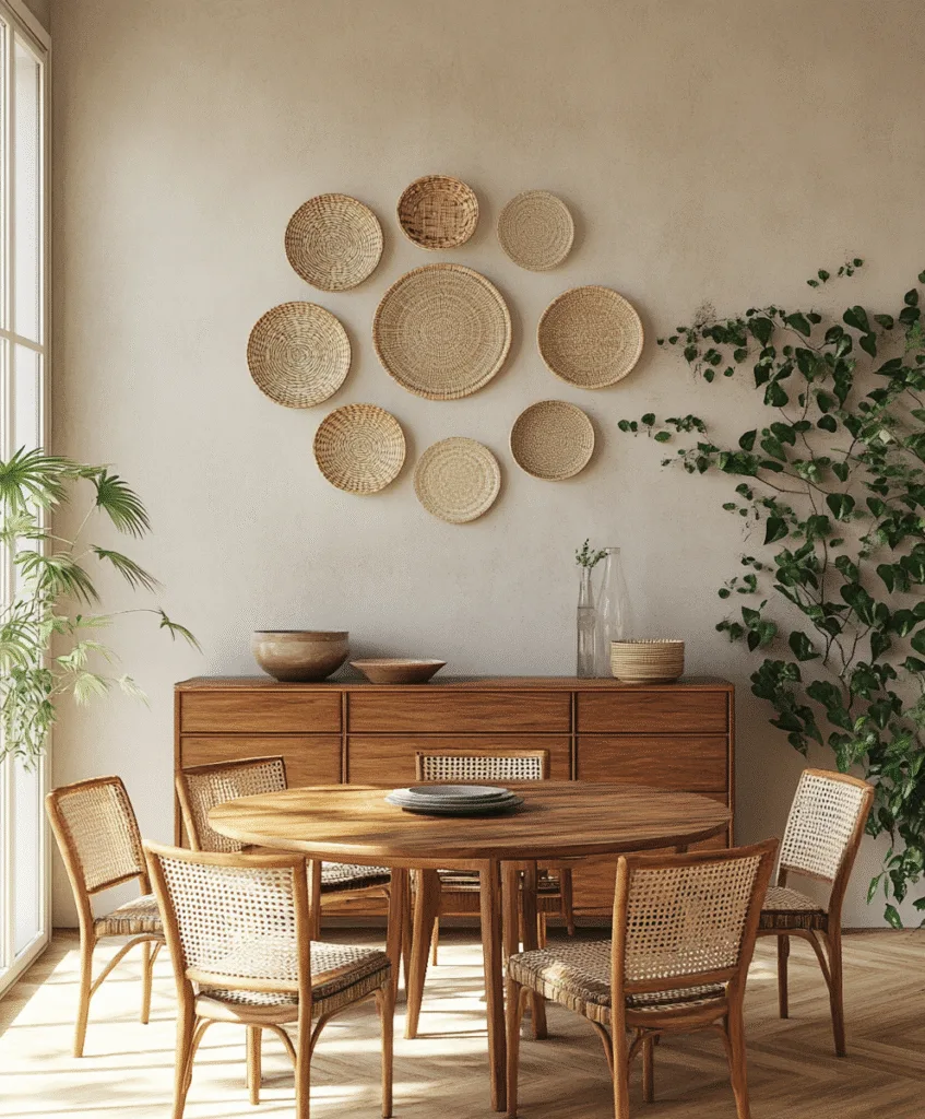 Don’t underestimate the charm of plate walls and woven baskets! They’re budget-friendly, colorful, and surprisingly impactful.