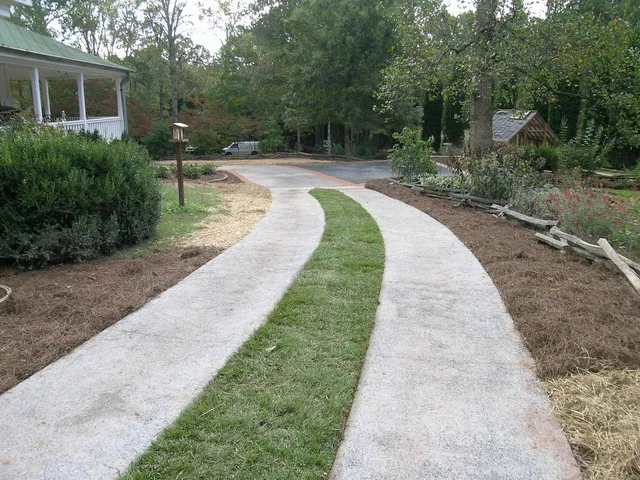 - Grass Gaps: The gaps between the pavers are filled with grass, which not only provides a green look but also helps with water drainage.