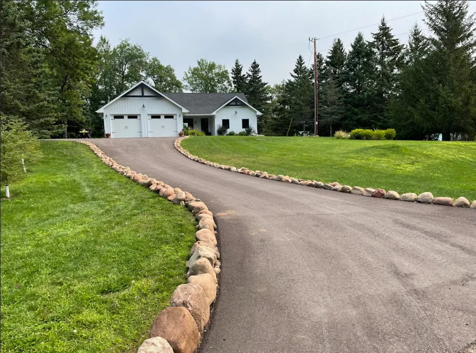 - Bold Bordering: Use large white stones or gravel to outline the edges of your blacktop driveway for a crisp, defined look.
