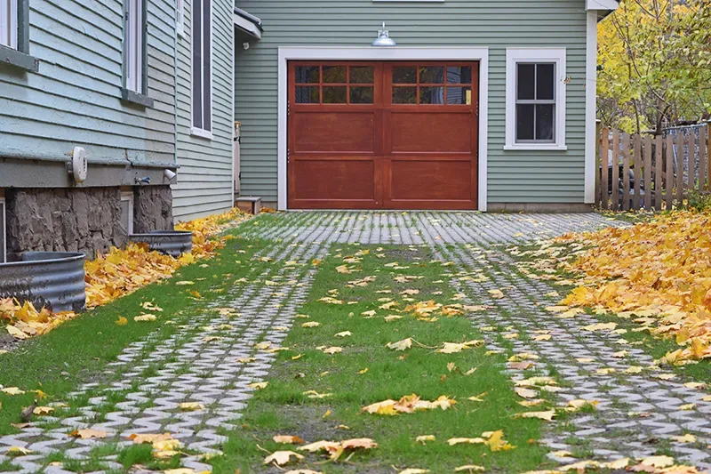 A permeable paver driveway with grass gaps is an eco-friendly choice that combines functionality with natural beauty.