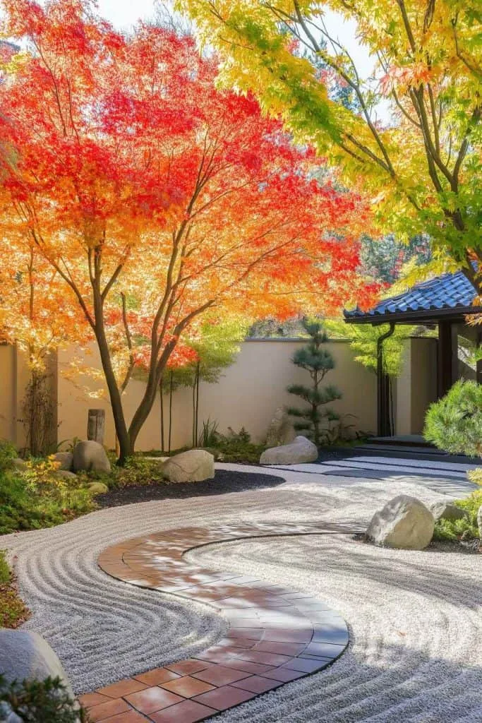 - Choose the Right Trees: Opt for ornamental trees like Japanese maples, cherry blossoms, or flowering dogwoods that don’t get too large.