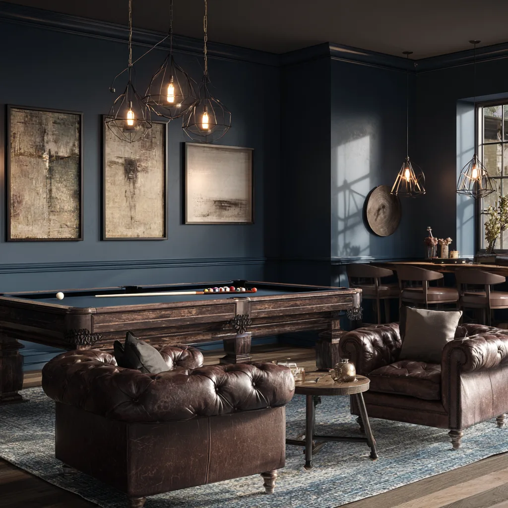- Add leather armchairs or a bar cart for that swanky touch.