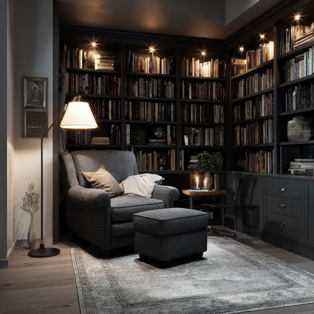 - Rich paint colors like navy, burgundy, or charcoal = instant mood.