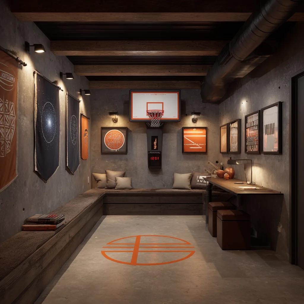 - Decorate with sports memorabilia or vintage posters.
