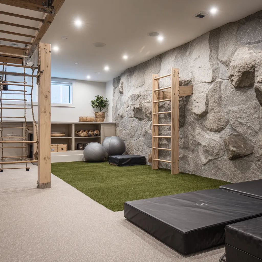 - Hang a mini rock wall or install a foldable climbing ladder.