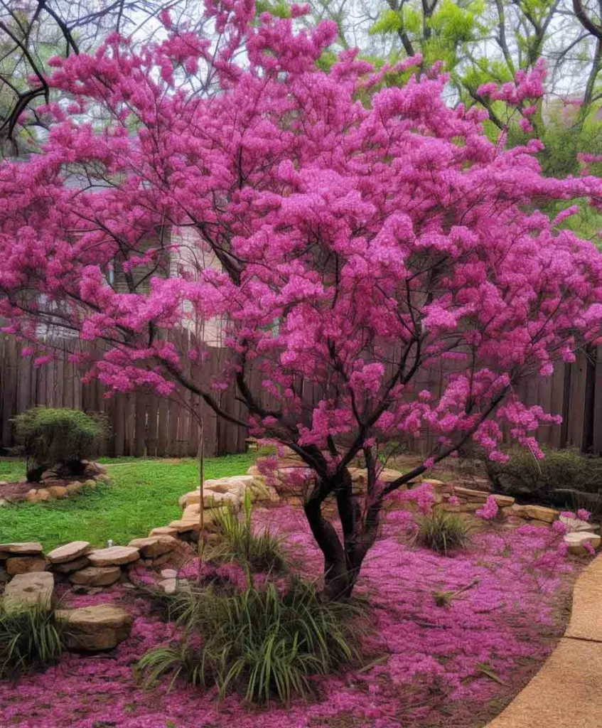 Now this one is pure Texas charm. It pops off in early spring with a shock of magenta or pink blooms that cover every branch.