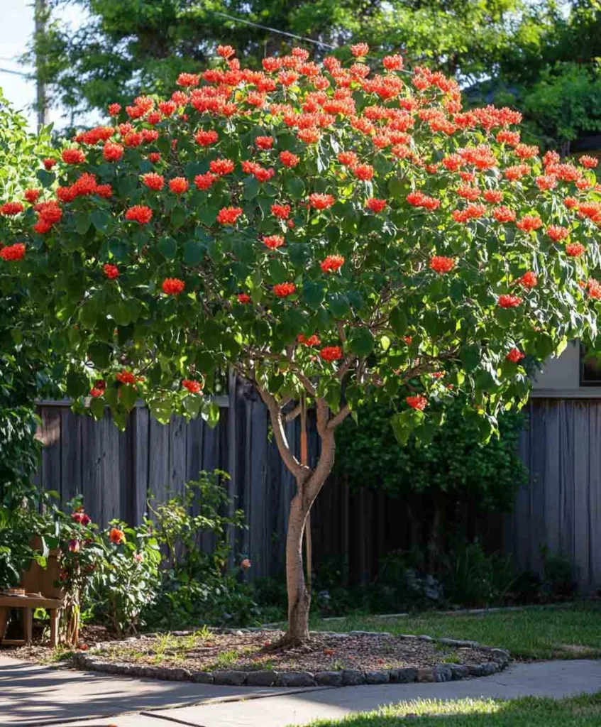 Honestly, I treat flowering trees as the anchor pieces of my outdoor space. Once they’re in place, everything else falls into rhythm, shrubs, flowers, mulch, you name it.