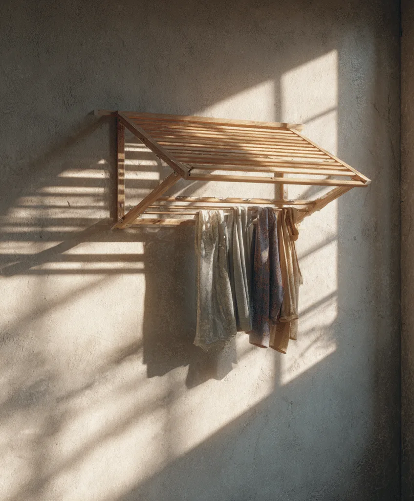 There’s always that one shirt I don’t want to shrink. I got tired of draping it over random chairs, so I put up a wall-mounted drying rack.