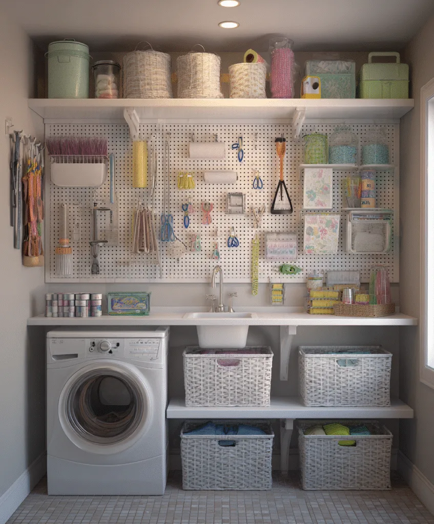 Pegboard used to remind me of hardware stores, but I changed my mind when I tried it in the garage. It’s perfect for laundry odds and ends.