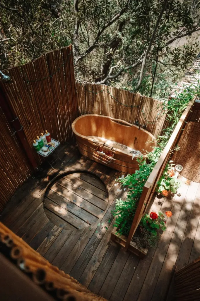 The greenery grows into a lush shield over time, and the colors add so much life to the space. Plus, it’s incredibly soothing to look at while soaking.