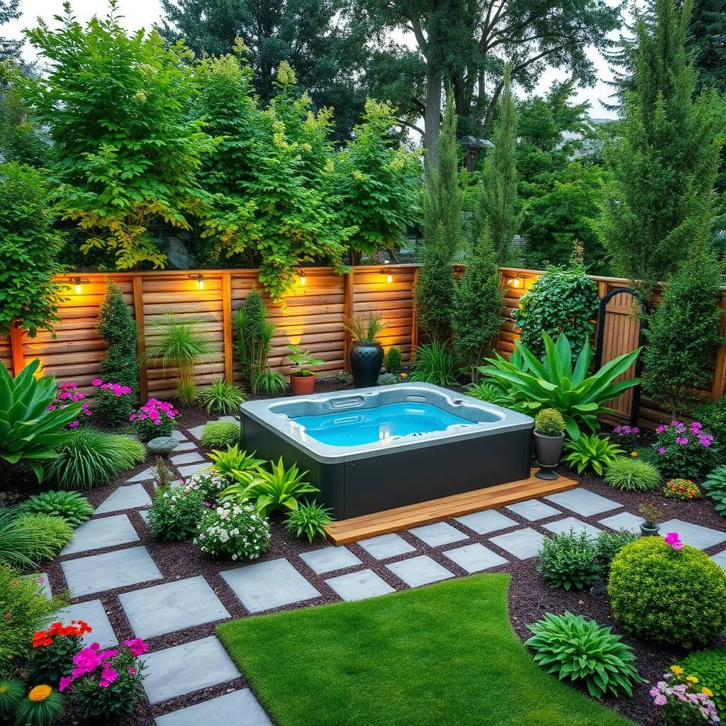 Landscaping is my favorite way to make natural barriers around a hot tub. I planted shrubs, small trees, and bright flowers around mine.
