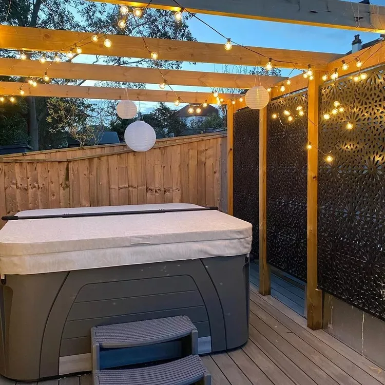 Wooden screens bring a timeless, rustic touch to your hot tub. I installed one wrapped with climbing vines—it’s now a natural divider.