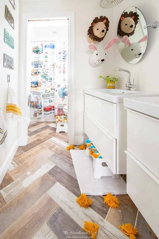 I’ve seen my kids light up every time they walk into a bathroom with something fun like this. It’s such an easy upgrade.