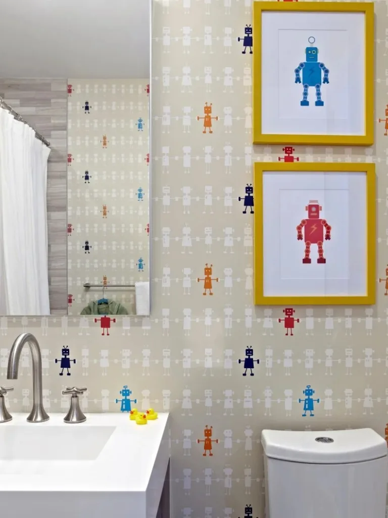 Robot wall decals bring life to this bathroom, making it feel cool and personal for your little ones.