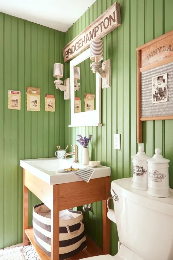 This green beadboard wall pairs so well with natural wooden finishes for a cozy cottage vibe.