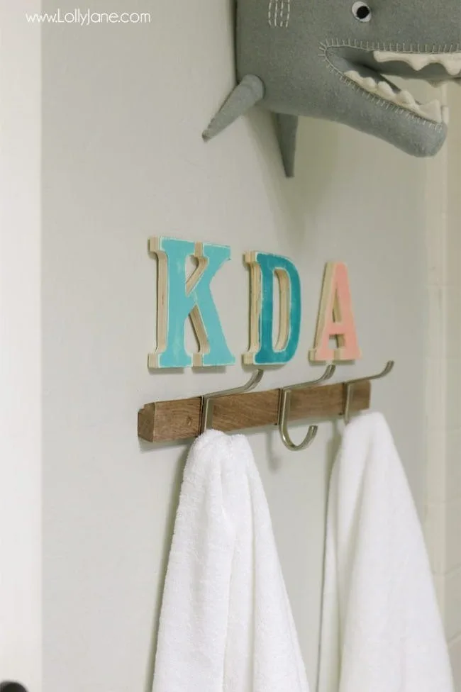 Adding kids’ initials to a bathroom is one of my favorite personal touches. It instantly makes the space feel unique to them!