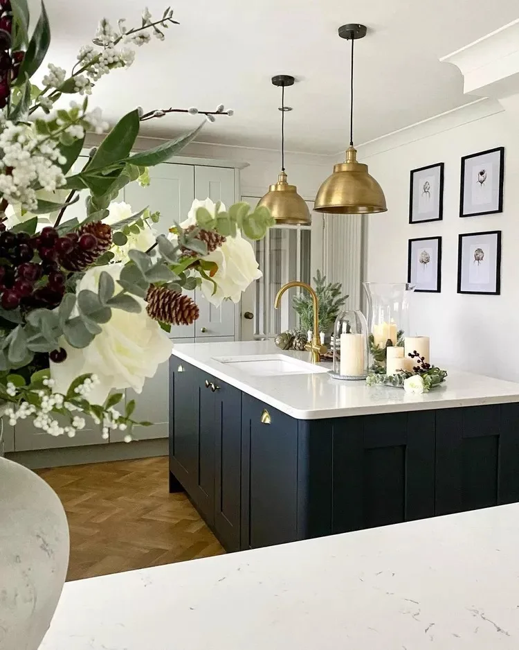 Candles are an easy way to bring warmth to your island. Group them with simple greenery, and you’ve got a timeless look that works year-round.