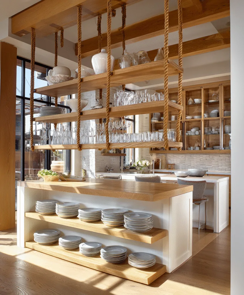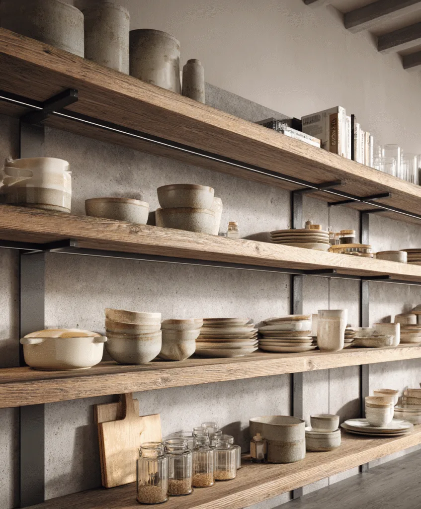 Open shelving isn’t just about storage—it’s about self-expression in your kitchen.