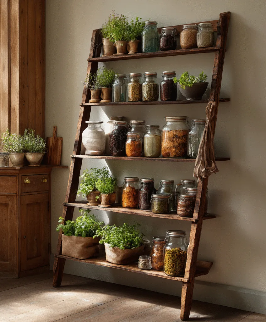 Don’t laugh, but I turned an old ladder into a shelf, and now it’s the most complimented thing in my kitchen!
