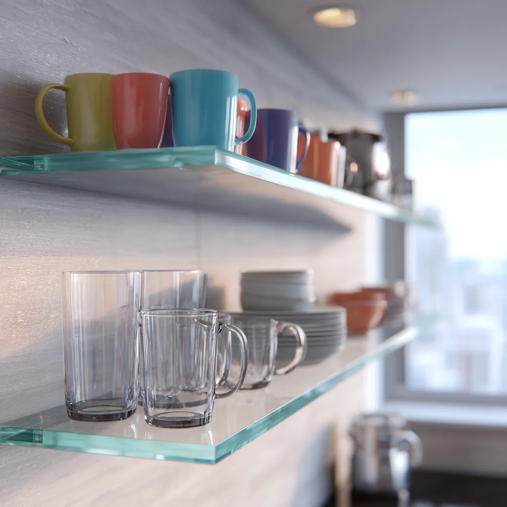 Okay, let’s talk elegance. Glass shelves add such a light, airy touch, especially in smaller kitchens or near windows.