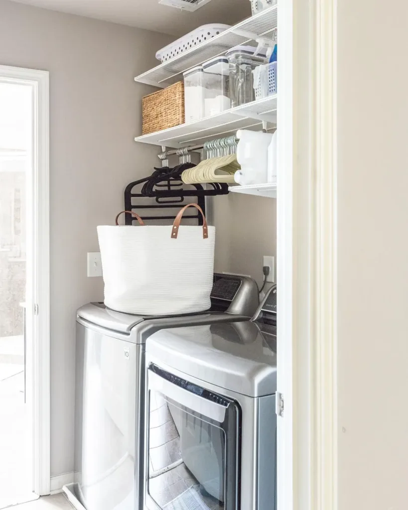 This setup adds functionality and a touch of elegance, making your laundry tasks more organized and enjoyable.