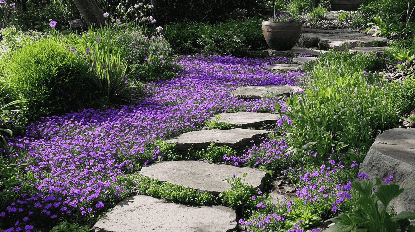 I tucked it between my stepping stones, and it started spilling over like a soft little waterfall. It spreads fast, so be ready to guide it a bit.