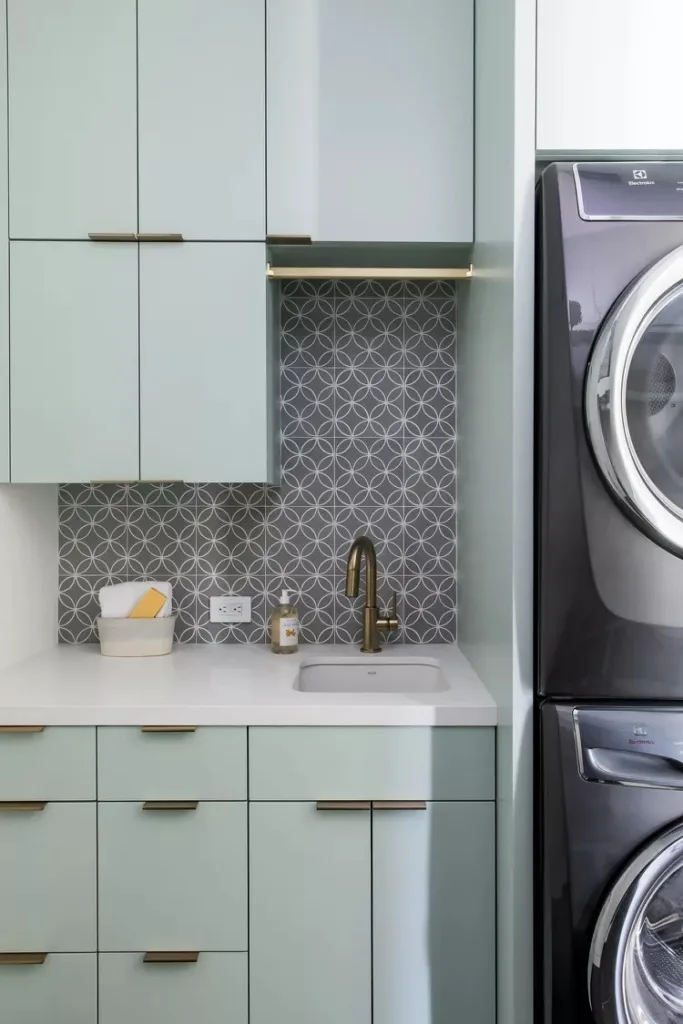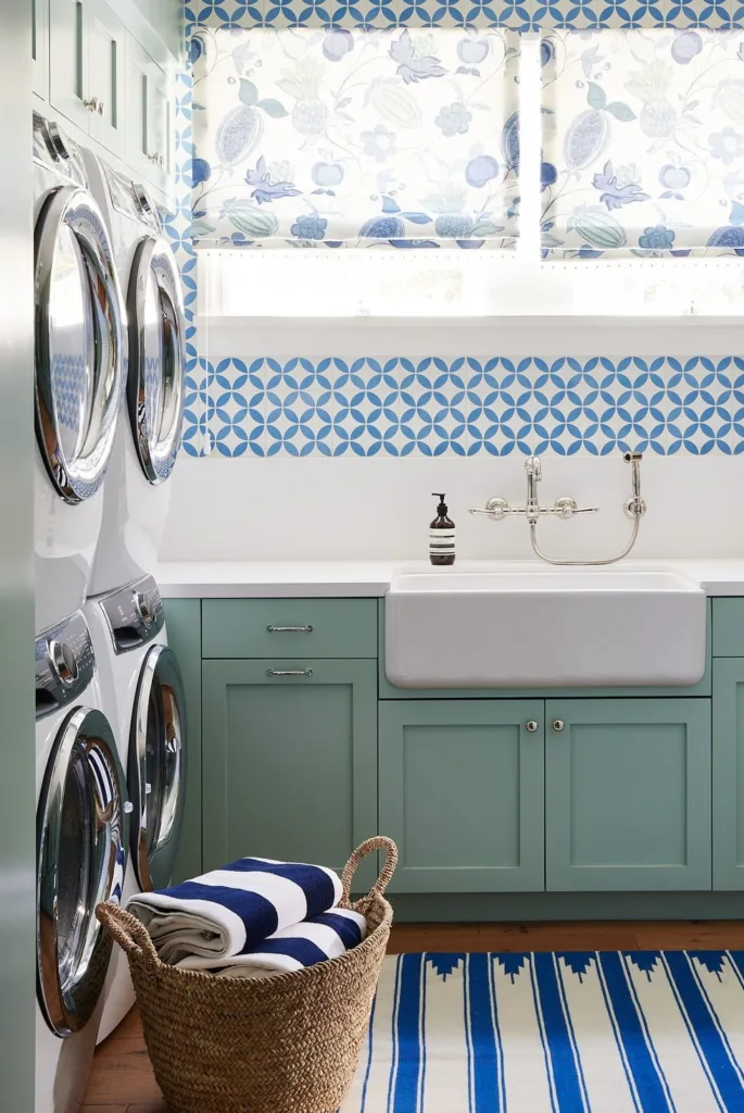 If your laundry space feels cramped, try cool tones—they open up the room instantly and feel refreshing year-round.