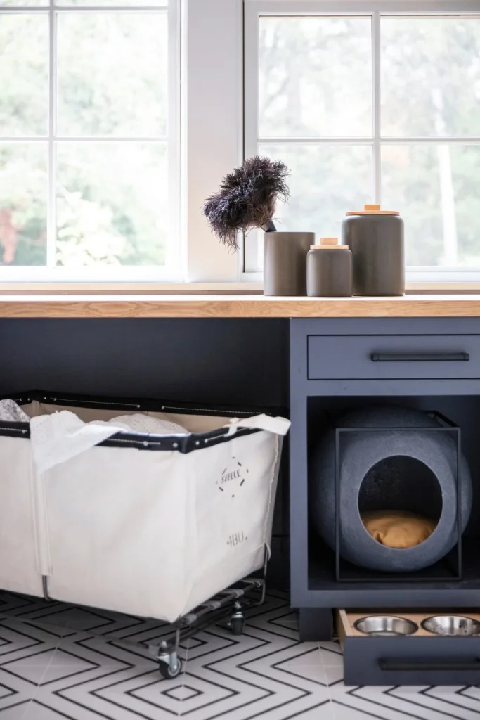 Creating defined zones like this elevates any laundry room. It’s perfect for staying neat without overwhelming the space with furniture or clutter.