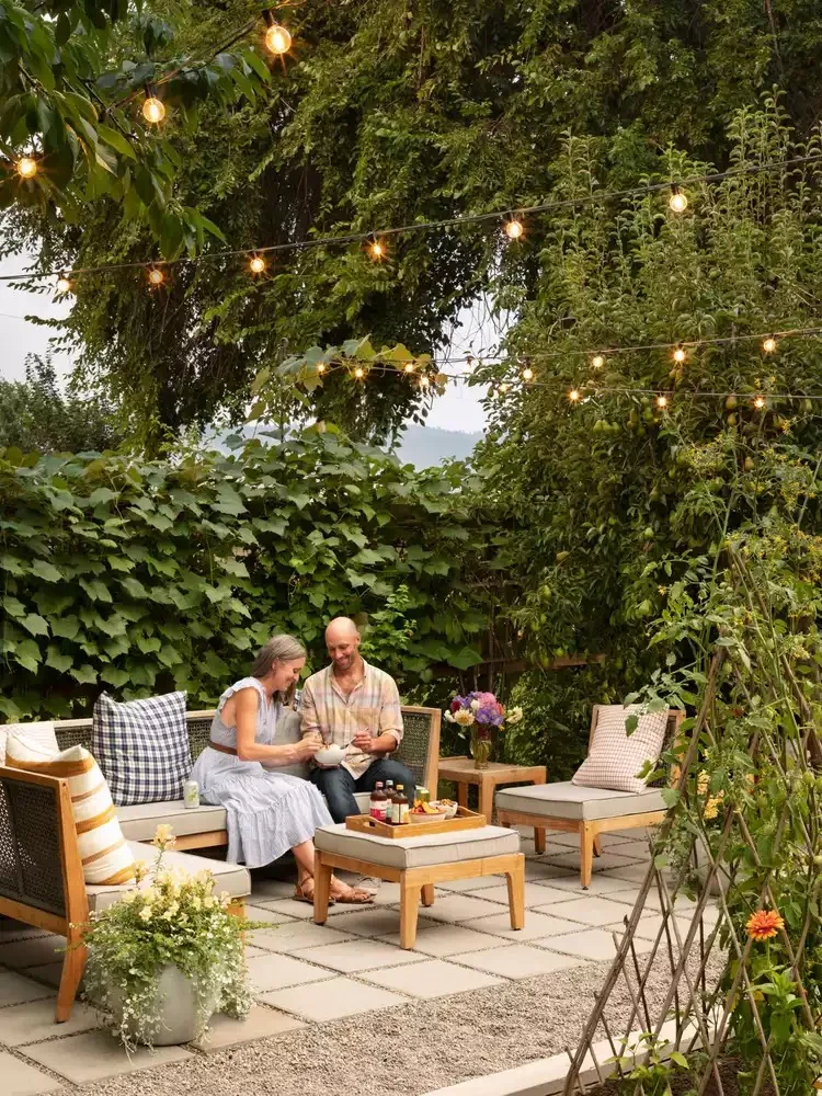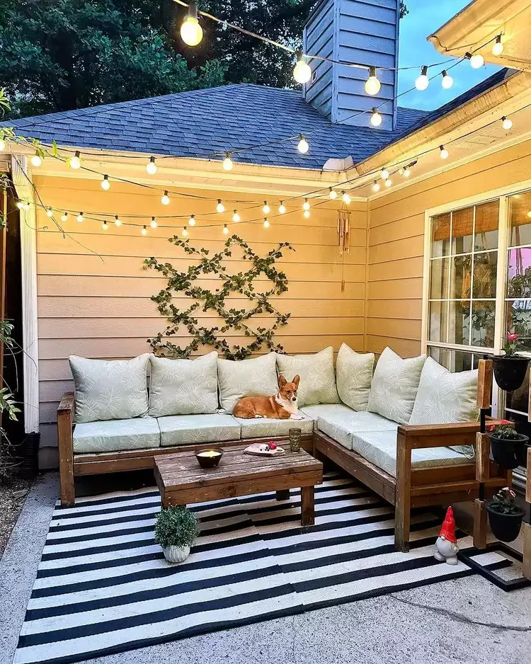 I’d love to hang out here on a cool summer evening! String lights framing the seating area create an intimate but airy vibe.