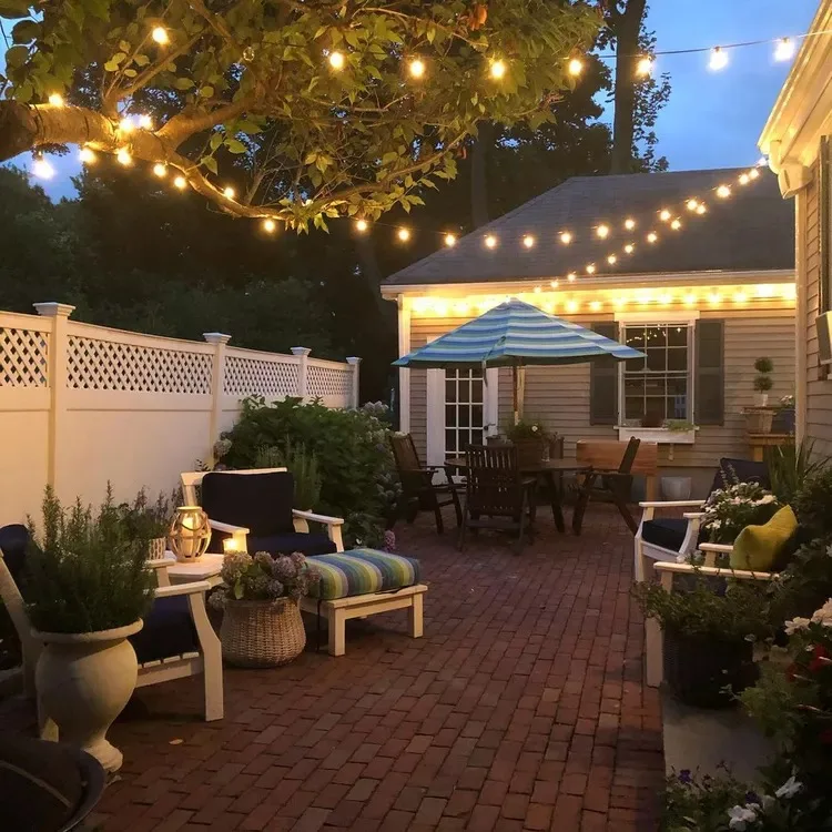 15. Brick Patio with Soft Overhead Lighting