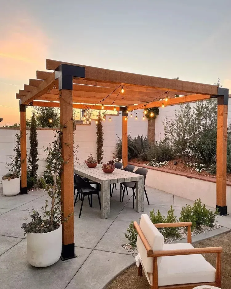 8. String Lights for a Modern Pergola Lounge
