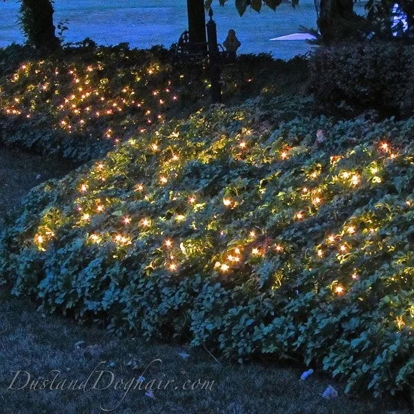 When I first tried laying string lights along my flower beds, I couldn’t believe how magical it looked. The lights highlight your landscaping without being too overpowering.
