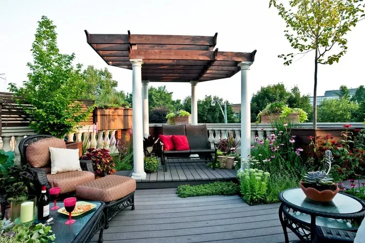 A rooftop pergola turns unused space into a stylish haven.
