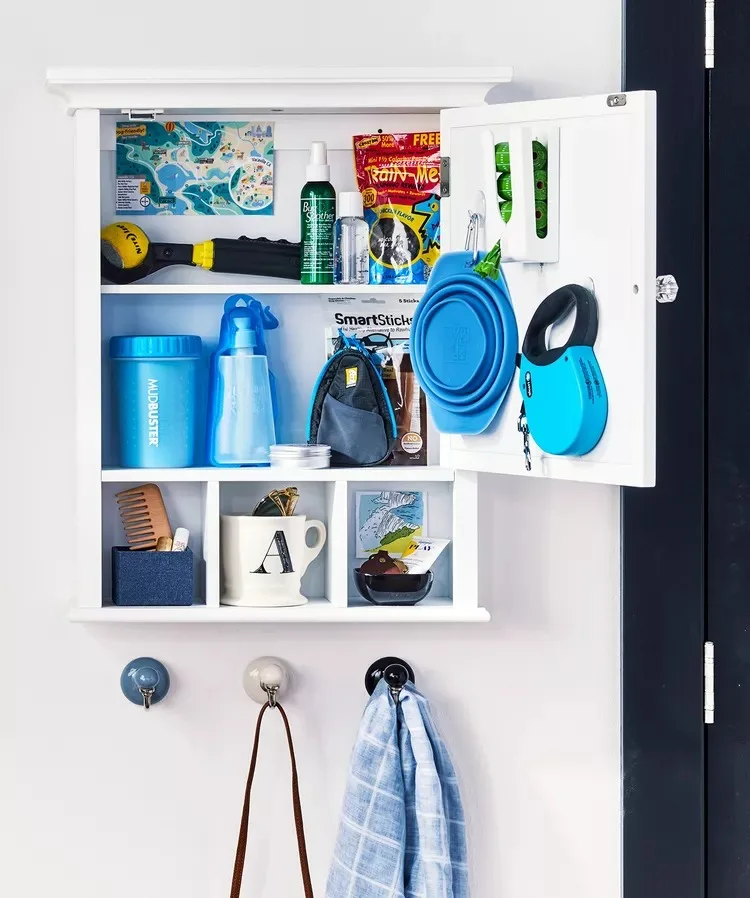 Transforming a cabinet into a pet supply station has been a lifesaver. I added hooks for leashes and bins for toys and treats.