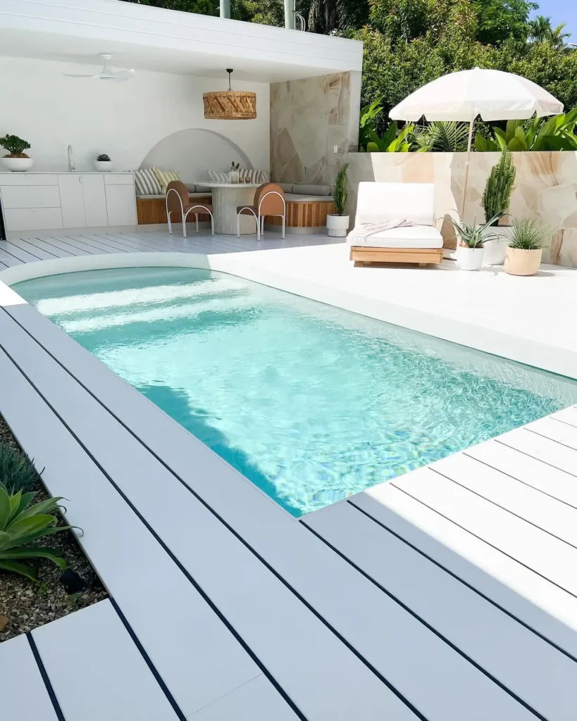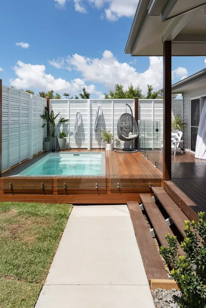 A plunge pool is small but mighty. It cools you off, looks stylish, and doesn’t take up much space.