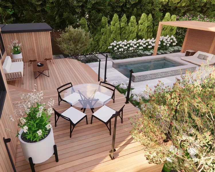 Want the best of both worlds? Build a small deck with a built-in hot tub or compact pool. It’s a great spot to chill, relax, and even entertain.