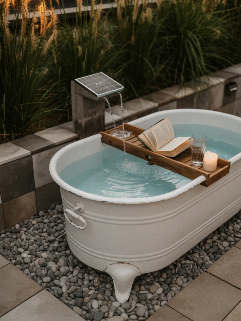 I stumbled on this idea when my neighbor was renovating and offered their old tub. With a bit of cleaning and a touch of paint, I turned it into a one-person mini oasis. Perfect for a soak with a book and a cold drink.