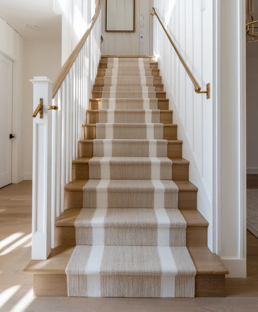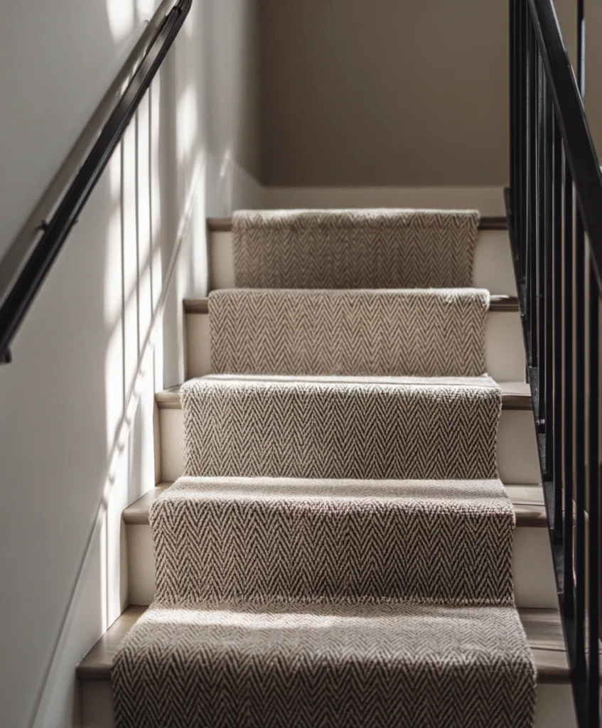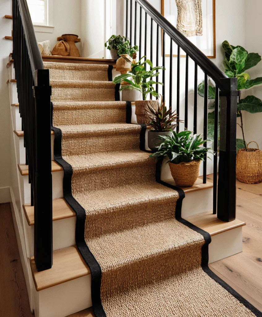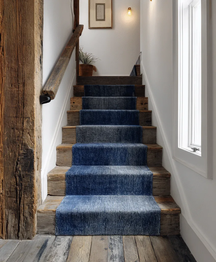 A flat-weave runner with a contrasting trim feels tailored and intentional. It’s like a blazer for your stairs—structured, but not stuffy.
