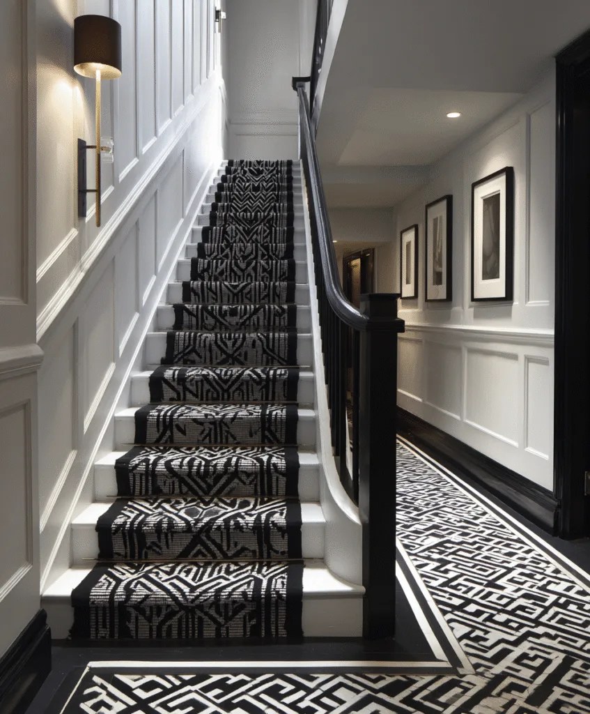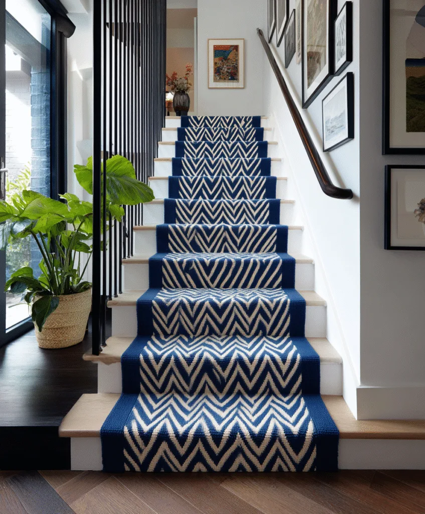 If your stairs need a personality upgrade, a geometric runner will do the trick. Think diamonds, hexagons, or even chevrons.